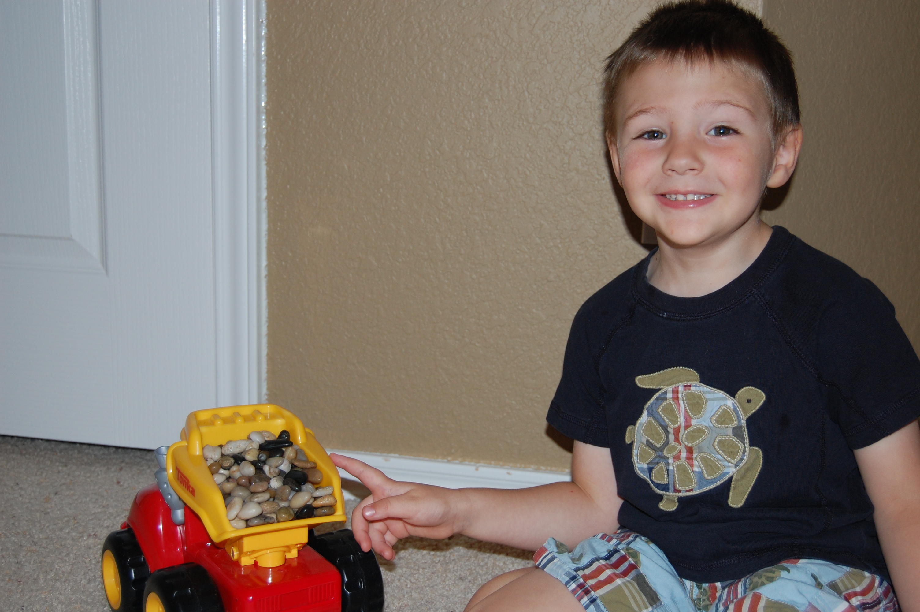 Last month, I posted an article about Chore Charts & $$ for Kids (http://wp.me/p1se9T-48). We were trying out a new system for our 3-yr-old. Well, he did it! He collected all the rocks in his dump truck so he got Chuck-E-Cheese. It was a blast, he was beaming with pride! During lunch, we talked about how hard he worked for this reward.